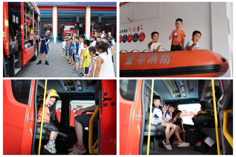 消防站“活”起来,实景课堂学防火。婺城大队充分发挥消防站作为安全教育主阵地的作用,将营区全方位开放为实践课堂。孩子们走进“红门”,消防员化身专业讲师,重点围绕家庭、校园常见火灾隐患识别、初期火灾扑救方法以及火场逃生自救技巧进行生动讲解。消防员利用站内实景设施,引导孩子们亲手操作灭火器、消防水带等器材,在模拟环境中学习“真本领”。讲解员结合消防车辆、装备库,详细介绍各类“秘密武器”的功能和使用场景,让孩子们对消防救援有了更直观、更深刻的认识。